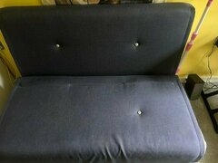 Made Large Haru 2-seater sofa bed - velvet sapphire blue. £60 cash or bank transfer. A few small marks but very good condition as rarely used. Height 80cm Width 143cm Depth 89cm Sofa bed dimensions when assembled flat: H27 x W143 x D188.5cm (size of a standard double). RRP £550. More details here: https://www.made.com/style/st735395/n00102 Links to photos below too (not sure why it isn't loading them to this post without you having to download). Really easy to turn from sofa to bed - click mechanism. I'm happy to also throw in a double mattress topper we bought that makes it comfier to sleep on. I haven't tried it myself but my father in law said he had a good night sleep! Priced for a quick sale as we need the space. Collection only from SE15 4AE. Please call 07762 824562 if interested. IMG_2083.HEIC IMG_2092.HEIC N00101s7.jpg.avif N00101s8.jpg.avif N00102s4.jpg.avif