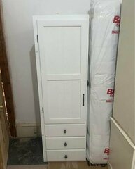 white Double Aspace wardrobe (in two parts in the photos, makes transport easier but easily fits together) one side full length door and the other side has 3 drawers. Adjustable shelves, sits on a plinth and has a decorative top. Ideal for nursery or kids rooms (but is a full size wardrobe so can be used anywhere) £40 collect from Herne Hill