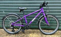 Mechanically good and recently serviced, it is ready to ride. Cosmetically the bike is ok but not perfect, it has a number of chips to the paintwork and scuffs to the saddle - see the photos, but if you think about a child being a bit clumsy against the bike racks you'll get the picture. Collection is from Camberwell SE5, near Denmark Hill station. MANUFACTURER'S DESCRIPTION AND SPECIFICATIONS The 20-inch hybrid Frog 53 kids’ bike is the ideal multi-purpose geared bike, suitable for 5 to 7-year-olds. This premium hybrid children’s bike has a lightweight, sturdy aluminium frame, weighing 8.15kg making the bike easy to manoeuvre on roads, pavements, towpaths and forest trails. It comes with Kenda small block eight tyres for maximum stability and grip, full-length mudguards and the option to attach a pannier rack to the frame, for transporting school books and sports equipment. The Frog 53 kids’ bike is equipped with age-specific components, including a quick-release child-specific saddle for the perfect riding position and FrogFit Technology® youth-specific 8-speed gear shifters with short lever travel and ultraslick cabling making changing gear and undulating rides a breeze. The bike also comes with Tektro brakes with small, easy-to-reach brake levers, which means better control and improved confidence for young riders. And, our patented Frog cranks, for more effortless pedalling, which reduces the distance between the pedals increasing efficiency and comfort for children. The Frog 53 is designed for longevity and has been optimised to help maximise the lifetime of the bike for a growing child. It offers a lower bracket position to ensure a safer more ergonomic riding experience, which also allows for a greater leg-length range to be accommodated, perfect for growing legs. And the handlebar height can be adjusted within a 40mm range, as a child grows. Key Features Lightweight 20-inch geared kids’ bike that is easy to handle Small, easy-to-reach brake levers for better control and improved rider confidence Patented Frog cranks for more effortless pedalling, increasing efficiency and comfort FrogFit Technology® youth-specific 8-speed gear shifters for easy gear change Free 10-year extended warranty on frames and forks Reflectors, mudguard and bell included Suitable for 5 to 7 years with a recommended inside leg of 50cm-65cm Specifications Frameset Frame 6061 T6 heat treated Aluminum alloy, seat tube 11 (280mm) Fork 6061 T6 heat treated aluminium alloy Wheels Wheelset Aluminium, 20, double wall, machined braking surface Tyres Kenda K1047, 20x1.5, Hybrid Mudguards Full length, resin, black Drivetrain Pedals Frog Bikes, eco-friendly rice husk & plastic composite, w/reflectors, 9/16 Rear Derailleur Shimano Altus, M310, 8-speed Shifters FrogFitTechnology® youth-specific 8-speed gear shifters with short lever travel and ultraslick gear cable Chain KMC, 8-speed Crankset Frog Bikes Patented,114mm, Aluminum straight arm cranks, 32T chainring, black Cassette 8-speed, 11-32t Components Handlebar Aluminium, flat bar, 460mm Stem Aluminium, 11/8, 38mm, 4 bolt clamp Grips Frog Bikes specific, lock on, slim grips Brakes Tektro 836AL, Aluminum, linear pull Brake Levers Tektro JL510, aluminium, easy reach Saddle Frog Bikes child-specific saddle (small), steel rails