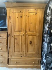 Solid Pine Wardrobe, Drawers & Blanket Box Wardrobe (194h x 112w x 52d cm – hanging space lifts of the drawer base for transport) - £80 Chest of Drawers (120h x 85w x 43d cm) - £65 Blanket Box (43h x 139w x 47d cm) - £40 They show usage marks and be sanded. Blanket Box has water marks on the lid. Available if listing showing. Collect from Brockley SE4 (close to Crofton Park station). Please Private Message me with your Mobile Number and I’ll TEXT you back. Thanks for looking.