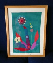 Framed Silk Collage of Flowers £50 Signed on the back by the artist Bronwen Cunningham Year 2011 Size 33 x 43 cm Wood Veneer Frame Bronwen Cunningham was a member of The Guild of Sussex Craftsmen and worked in hand dyed, silk patchwork and collage creating scarves, clothing and pictures. A large silk hanging was commissioned from Bronwen for the reception in Cutlers Gardens, London EC2 Bronwen was also a writer with books including The Piccolo Book of Riddles, Funny Business, Cunningham's Little Red Record Book, and The Puffin Joke Book. Quentin Blake illustrated several of her books and she also worked alongside her friend, Jocasta Innes, on The Pauper's Cookbook. Collection from Camberwell SE5