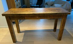 The table folds away so can be stored against a wall. Loads of fun with base of table working as a pool table, then separate table football and air hockey tops when you fancy a change of game. Comes with two pool cues, all the balls, triangle for setting up, air hockey pucks and hitters and table football balls. Recommend for children from ages 6-13. w58 length 104 height77cm. Free to collect from Maxted Rd, SE15