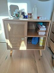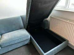 Open to offers and I have more pictures of each item, so do not hesitate on PM me. Sizes are in CM. - Blue velvet L shape sofabed with storage: 260 x 78 x 90/170 (bed is 190 x 135 x 12) + mattress + cushions on pictures: £300 - Black clothing rack: 68 x 185 x 33: £20 - Double bed Wooden white bed frame: £40 - Bedside tables x2 (one is chipped on one side)+ lamps: 45 x 60 x 40: £15