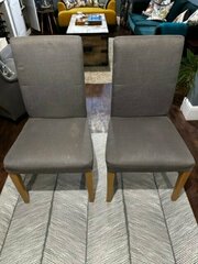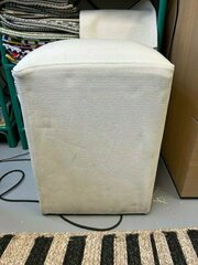 Two really nice fabric covered cubed stool/seats for sale. Upholstered in 100% cotton fabric. One is white and one is grey. Really good quality in terms of comfort but they do need to be cleaned as they have dirt marks or water marks on the fabric. £20 each. 54cm tall 45cm wide and deeo Pick up from office in Parkhall SE21 during office hours only.