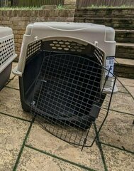 Large sturdy dog crate in good used condition. Suitable for medium-sized dogs Price £100 Condition Used – Good Pet Type Dog Dimensions 40” L x 27” W x 30” H Features Strong hard-plastic shell Secure wire door with latch Built-in carry handle Ventilation on all four sides Raised interior base Tie-down holes for travel stability Included Petmate Double Diner kennel bowl Refillable from outside the crate No-spill rim BPA and lead free Can be used for food or water Note Two crates are being sold separately. This listing is for the 40-inch crate only. Collection in SE22. Message to arrange pickup.