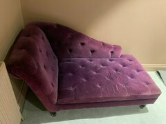 Beautiful chaise for sale. We love this chaise but we sadly have no more room for it. It's purple velvet. Velvet is a bit flatter in places through wear (see photos) but still beautiful and not that noticeable. Collect Brockley or I may be able to drop if local. Dims 145cm L x 69 W x 35 H Text Nicky 07961 172709