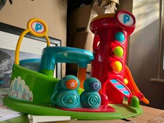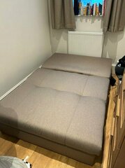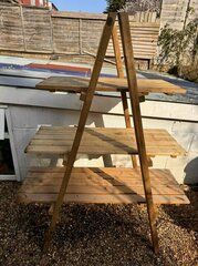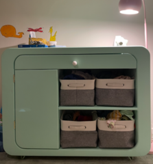 This is a handmade storage unit on metal legs that has been used as a baby changing bench. It has a cupboard and drawer fitted with a retro design. 90H x 122W x 50D The cupboard is 40cm wide and shelves are 60cm. It won't fit in a conventional car so you either need a van or a very big car. COLLECTION: Tarleton Gardens, SE23 3XW