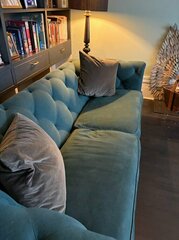 Beautiful Patrick 3-seater sofa from Sofa.com in brushed cotton/linen fabric. This is a premium British-made sofa known for its deep seat, relaxed cushions, and classic modern design. The brushed cotton/linen upholstery gives it a soft texture with a natural, relaxed look that works well in both contemporary and traditional interiors. Very comfortable with generous proportions—perfect as a main living room sofa. Details Brand: Sofa.com Model: Patrick Size: 3-seater Fabric: Brushed cotton / linen blend Colour: Blue Removable cushions Deep, comfortable seating Approximate dimensions: Width: ~234 cm Depth: ~98 cm Height: ~75 cm Condition: Excellent / very good with light normal use (adjust as needed). price - £650