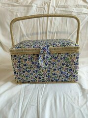 Set of 2 new and unused floral print embroidery notions/sewing boxes, each with a floral print fabric design covering, decorative trim and handle. Small one - 7.5" W (19cms) x 4.5" D (13cms) x 3.5" H (9cms) - fits inside large one - 11" W (27cms) x 7" D (18cms) x 6.5" H (16cms) approximately. Each box has a removable tray insert, an elasticated pocket and a pin cushion. Can be sold separately - £25 large/£12 small or both together for £30 or very nearest over. Cash on collection only from SE23 3YW = Forest Hill/Sydenham SE26 border and just up the hill from SE22. Please note - No original packaging or box but can gift wrap if required.
