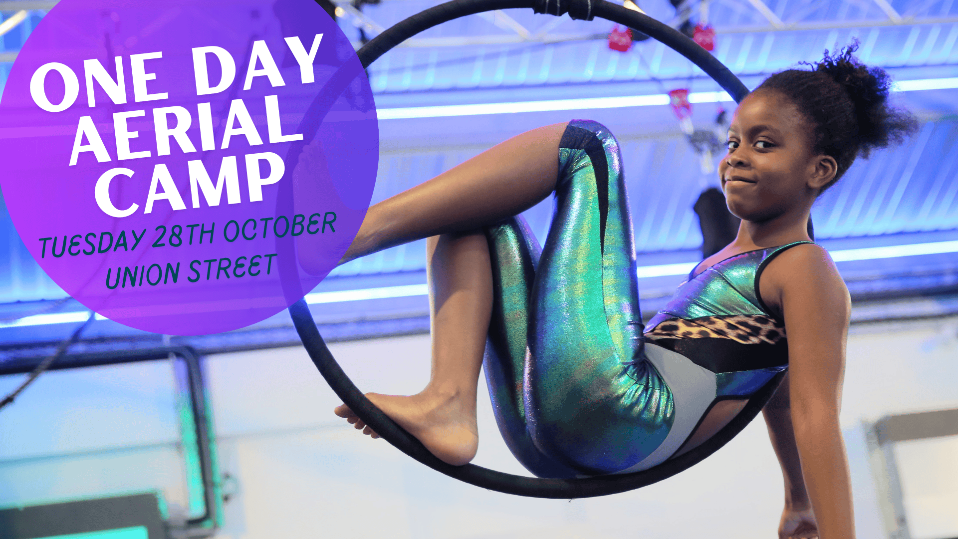 We are running a 1 day aerial workshop for your young flyers age 7-16 on Tuesday 28th October! It is set to be a fun filled day where your kids feet literally wont touch the floor as they will be flying high on aerial silks, slings, hoop and trapeze! No experience necessary as our team of experienced instructors are adept at working with different levels to keep everybody safe! For more infor
