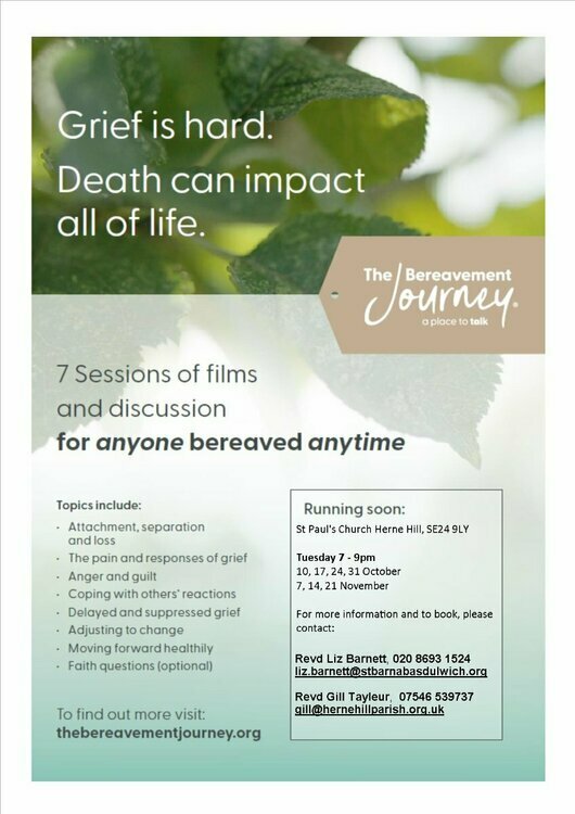 "Grief is hard. Death can impact all of life." The Bereavement Journey is 7 sessions of films and discussion for anyone bereaved anytime. https://www.thebereavementjourney.org/