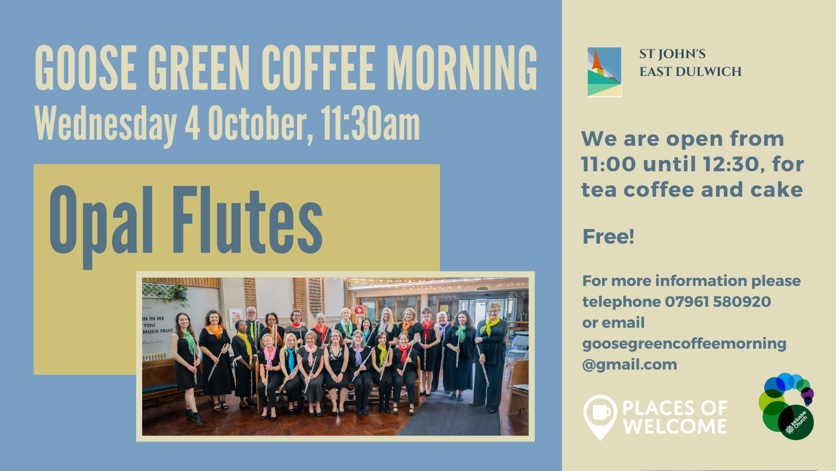 Do join Goose Green Coffee Morning for this performance by wonderful flute choir Opal Flutes.