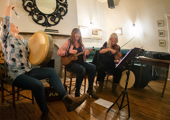 Dulwich Folk are delighted to welcome back our local folk supergroup! Tamesas are three women who work in music, and Tamesas reflects their wide musical interests with a definite Celtic emphasis. (Tamesas is a Celtic work for Thames). Expect great harmonies with songs and music from the UK, Europe and America using among others fiddle, Bodhran, ukulele, flute and shruti box using gentle storytelling to driving, funky up-tempo rhythms.