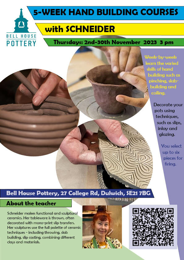 This course will be led by Schneider. Schneider makes functional and sculptural ceramics. Her tableware is thrown, often decorated with mono-print slip transfers. Her sculptures use the full palette of ceramic techniques - including throwing, slab building, slip casting, combining different clays and materials.