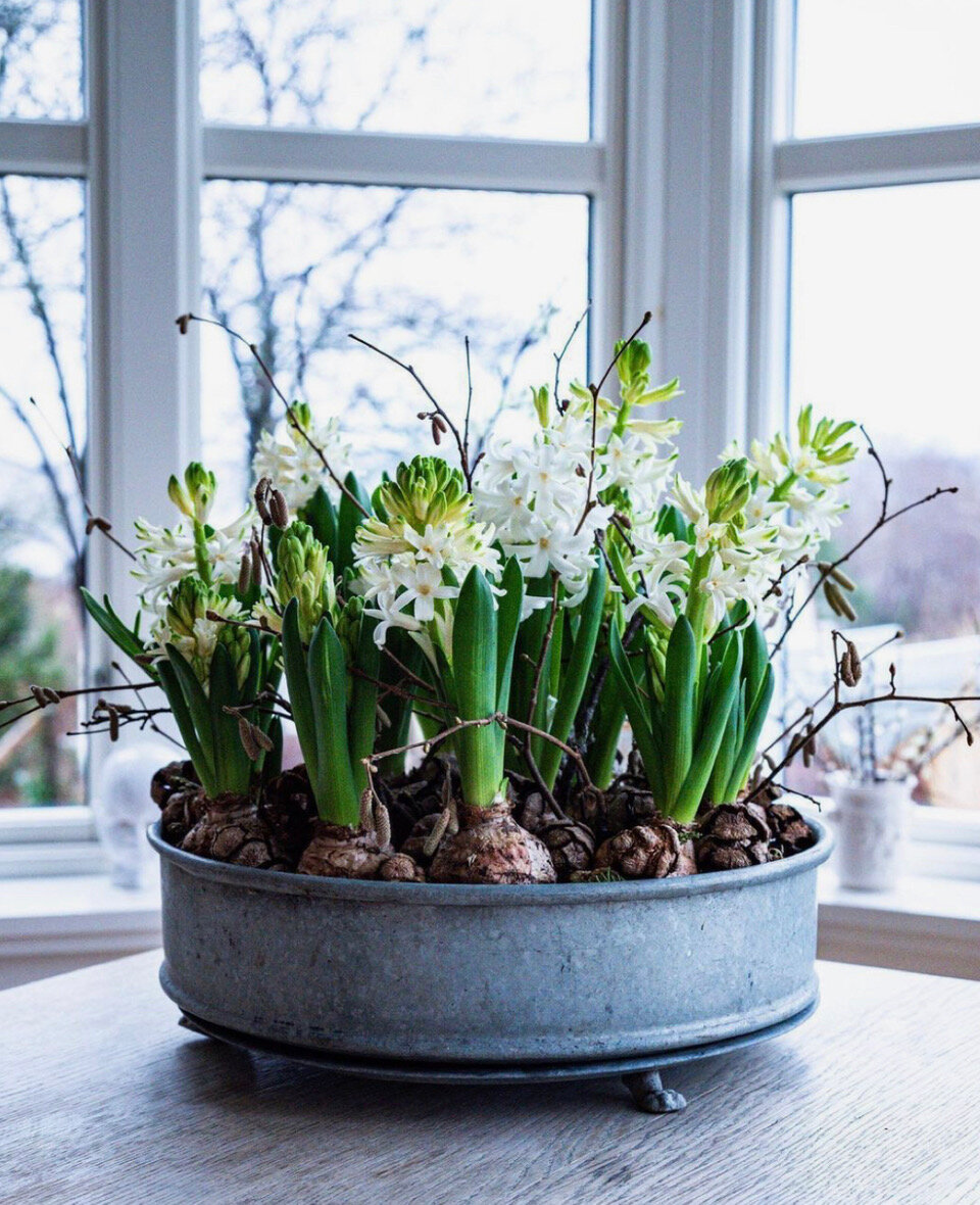 Create a long lasting indoor container garden of fragrant spring narcissus, hyacinth and muscari bulbs, alongside lush living moss and supportive branches. Learn how to build your display, refresh it and reuse on repeat. Bring on Spring!