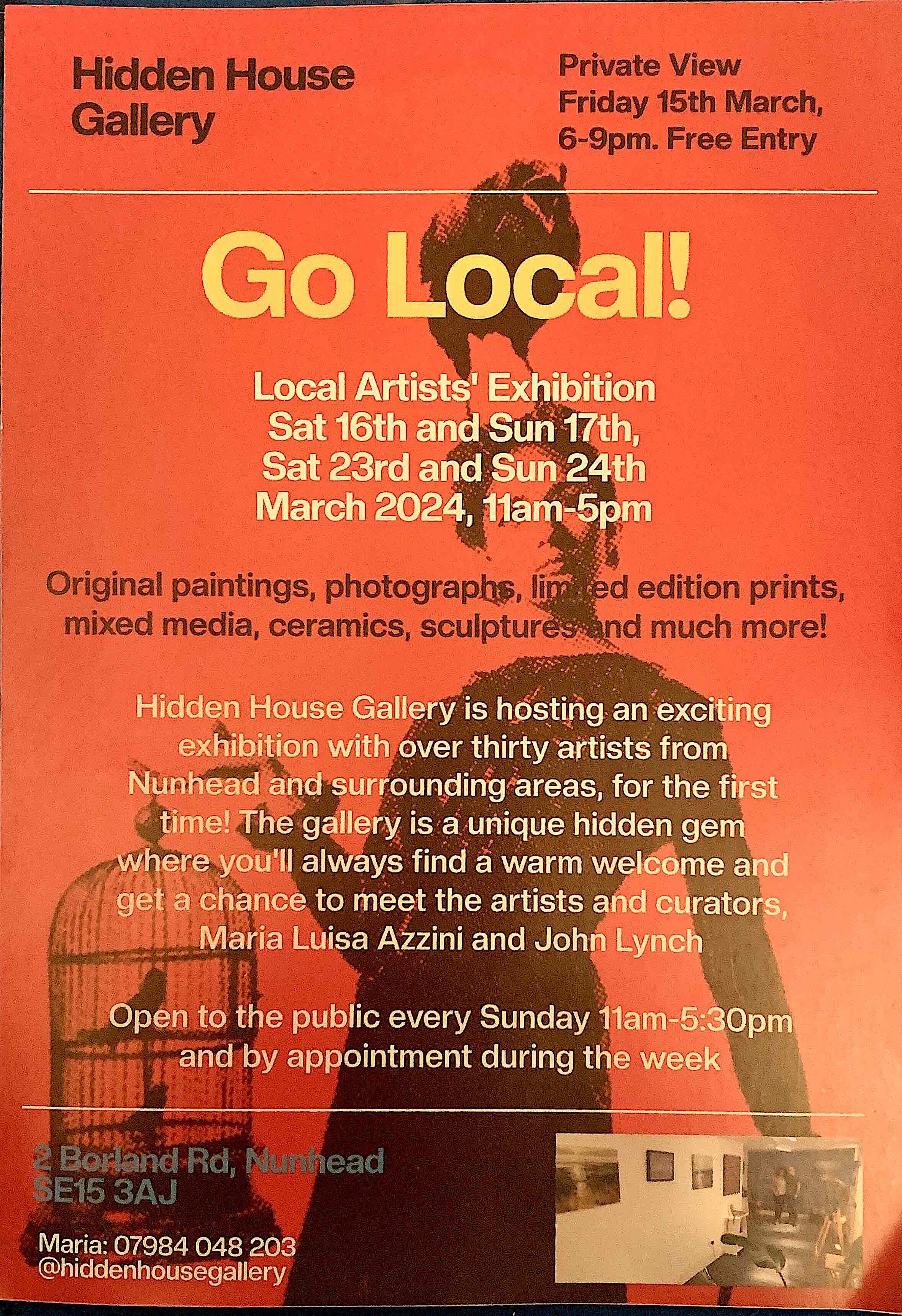The gallery is a unique hidden gem near the Ivy House in Nunhead where you'll find a warm welcome and get the chance to meet the artists and curators, Maria Luisa Azzini and John Lynch.
