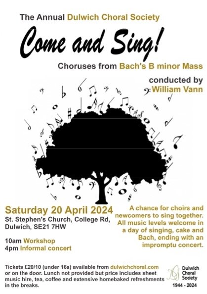 Join members of Dulwich Choral Society for an all day workshop on 20 April preparing choruses from the Bach B Minor Mass.
