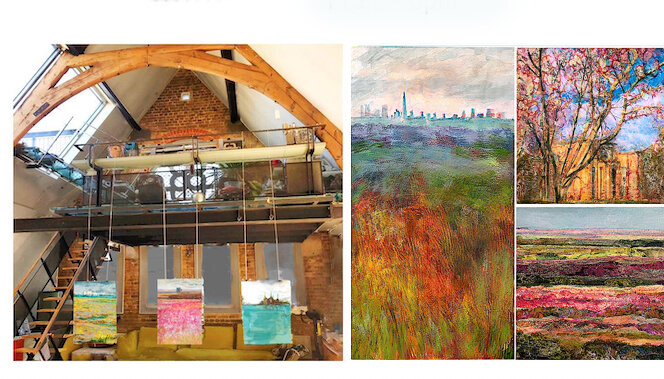 I’ll be showing a new series of mixed media landscapes and also more ‘local landmarks’ & cityscapes & still life paintings in my live/work space in a converted Victorian school.