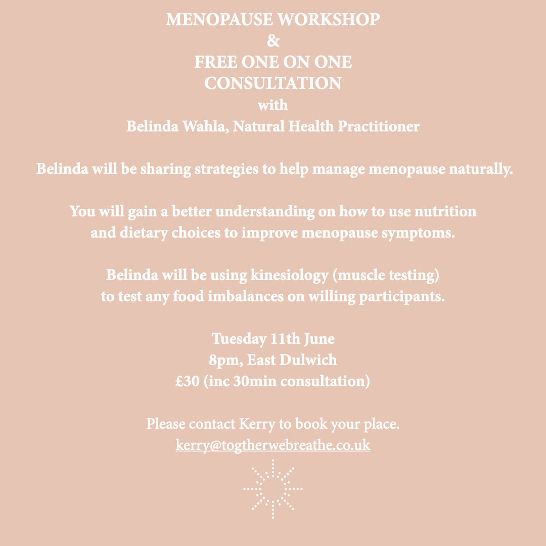 If you don’t get the opportunity to be tested on the night, attendees will receive a complimentary 30-minute session with Belinda to discuss individual menopausal concerns and solutions with the option of food testing.