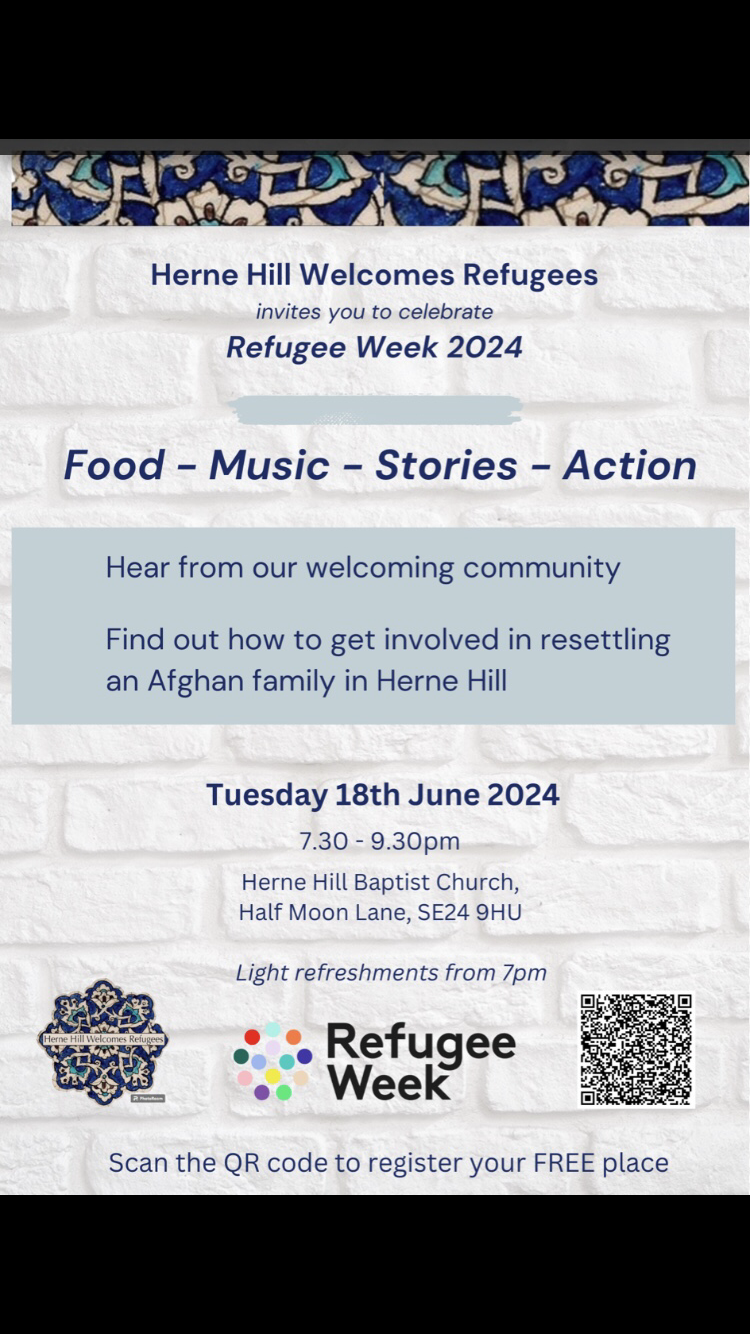 Herne Hill Welcomes Refugees invites you to hear from our welcoming community and find out how to get involved in resettling an Afghan family.