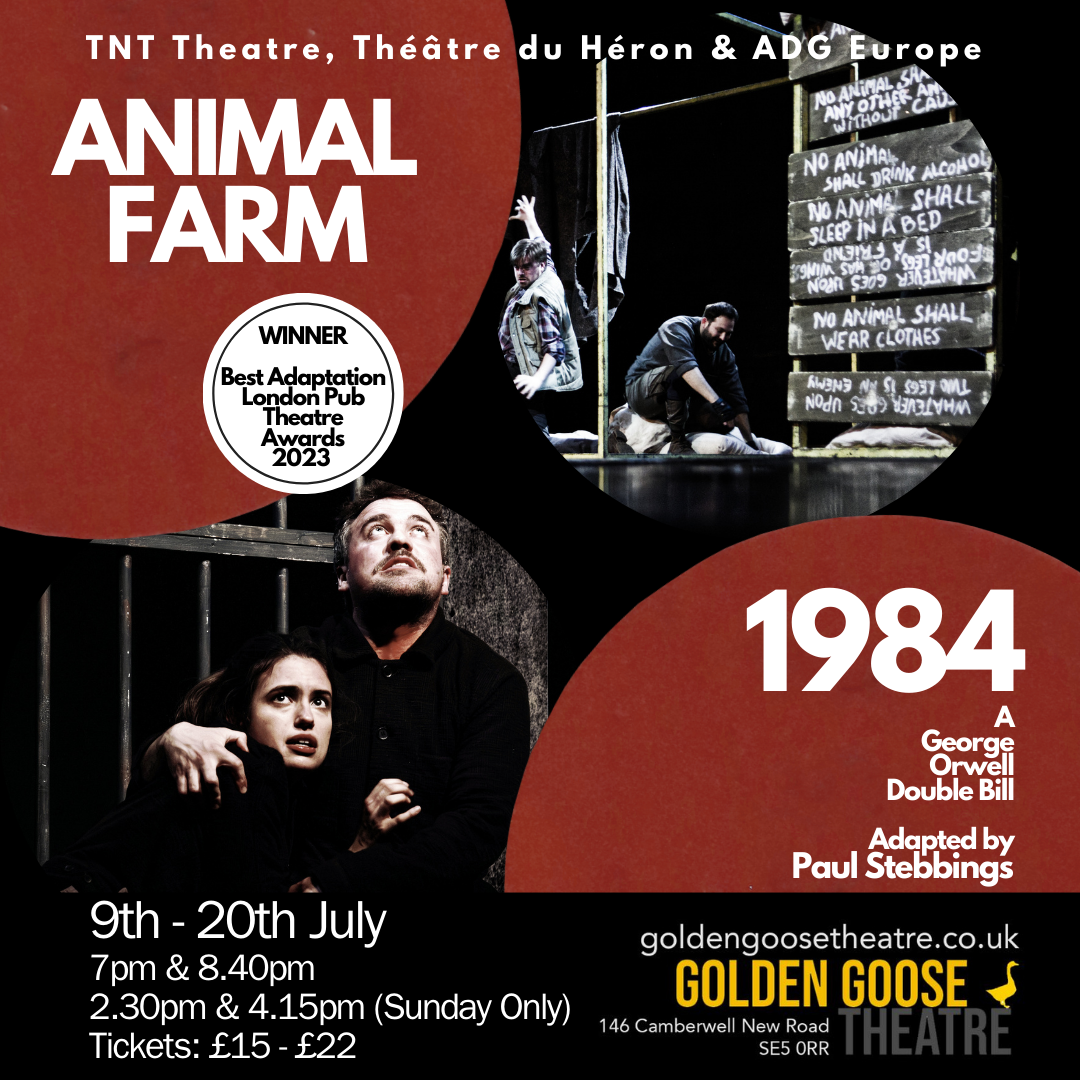 Formore informationand to purchase tickets visit the Golden Goose Theatre's website at www.goldengoosetheatre.co.uk/whatson/animal-farm-and-1984---a-george-orwell-double-bill or go directly to the ticketing page at www.ticketsource.co.uk/animalfarm1984.