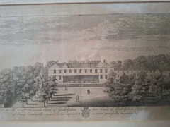 This charming framed print of Godolphin House in Cornwall, UK captures the beauty of the historic building in a medium-sized landscape orientation on paper. This could be a perfect addition to any art collection.