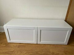 IKEA BESTA two door side board / TV unit. H38 x W120 x D42. Some marks from use but overall very good condition. Available on IKEA for £85 (https://www.ikea.com/gb/en/p/besta-shelf-unit-with-doors-white-hanviken-white-s49047421/).