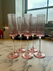 Approximately 60x pink plastic Champagne flutes.
