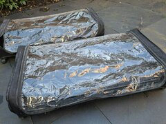 1. 2 underbed storage containers on wheels. The covers are transparent and the zip can close (to keep out dust). The wheels can move in all directions. They run well. They have been used to store shoes in, so will need a good clean. You could take the covers off and wash them. Free. Collection from Whateley Road, SE22. They were bought from Amazon for £40 for both. See the details https://www.amazon.co.uk/gp/aw/d/B0CGZC8CJY?psc=1&ref=ppx_pop_mob_b_asin_title It says each one is 30.9*17.3*5.3 inches, 48L large capacity