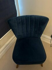 1. Blue velvet cocktail chair with dark wooden legs in good condition. Originally bought from Dunelm and selling for £40. Product details: - height 84cm - width 70cm - depth 60 cm