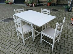 One of the chair bases has a dip in it but still perfectly useable. The seat bases come out with one screw and can be easily re-covered.