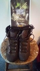 Aku boots hardly worn brown spear laces and booklet £75 ovno Introducing the PILGRIM the ultimate multi-purpose boot designed to excel in various environments. This exceptional boot offers outstanding support, stability, and impact absorption, making it a reliable choice for demanding and dynamic conditions. Upper: Full Grain Leather/Air 8000® 2.0mm Crafted with a combination of Full Grain Leather and Air 8000® 2.0mm, the upper of the PILGRIM GTX Combat FG M ensures durability and protection. The Full Grain Leather provides excellent strength and resilience, while the Air 8000® technology enhances breathability, allowing your feet to stay dry and comfortable even during intense activities. Upper Protection: Bycast To further enhance protection, the upper features Bycast upper protection, adding an extra layer of durability and resistance to wear and tear. This ensures that the boot can withstand challenging conditions and maintain its performance over time. Lining Description: Gore-Tex® Performance Comfort Inside the boot, you'll find the renowned Gore-Tex® Performance Comfort lining. This lining not only provides exceptional breathability but also guarantees waterproof protection, allowing you to confidently tackle wet and unpredictable terrains. No matter the weather conditions, your feet will remain dry and comfortable, enhancing your overall performance. Outsole: Vibram® Fourà The PILGRIM GTX Combat FG M is equipped with a Vibram® Fourà outsole, known for its exceptional grip, traction, and durability. This ensures maximum stability and support on various surfaces, whether it's rough terrains, slippery slopes, or uneven trails. You can confidently navigate through challenging environments with ease. Lasting Board (Stiffness): 6-4 Mm Nylon + Die Cut Eva (Medium) The boot's midsole is made of Die Cut Eva, offering excellent cushioning and shock absorption. This feature reduces the impact on your feet and joints, providing long-lasting comfort during extended wear. The lasting board, with a stiffness of 6-4mm Nylon and Die Cut Eva, offers optimal support without compromising flexibility, allowing for natural movement. Footbed: Cf Ims The PILGRIM GTX Combat FG M is completed with a Cf Ims footbed, which further enhances comfort and provides additional cushioning for your feet. With a weight of 600 grams per half pair, this boot strikes the perfect balance between durability, protection, and lightweight performance. Footbed: Cf Ims Choose the PILGRIM GTX Combat FG M for your next adventure. Whether you're a military professional, a hiker, or an outdoor enthusiast, this boot offers the perfect combination of support, stability, and impact absorption. Face any challenge with confidence, knowing that your feet are equipped with a boot that can handle it all.