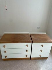 1. Free for collection from Herne Hill. Chest of drawers and matching side table. Victorian/Edwardian display cabinet with some damage to the wood at the front.