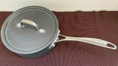 US manufacturer Calphalon uses hard-anodised aluminium to craft its cookware, which provides exceptional durability. Various items for sale: Calphalon 2½ qt (2.4L) hard-anodised aluminium saucepan & lid. Dimensions: diameter 20cm; height (excluding lid) 7.5cm. In good condition but shows some minor signs of use. Price £11.99 Calphalon 1 qt (0.9L) unlidded hard-anodised aluminium saucepan. Dimensions: diameter 15cm; height 6.5cm. In very good condition. Price £13.99 Calphalon 6 qt (5.7L) double-handed, lidded hard-anodised aluminium casserole pan. Dimensions: diameter 25cm; height 12.5cm (excluding lid). In excellent condition, with only a few minor scuff marks on the exterior. Price £24.99 Calphalon 3 qt (2.8L) glass lidded hard-anodised aluminium frying pan. Diameter 26cm. In excellent condition. Price £24.99 Collection from Clapham area and cash payment required