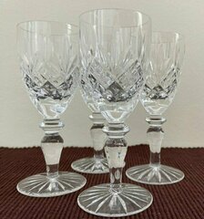 This is a lovely cut-glass decanter with a criss-cross and fan pattern, and oval dimples around the base and neck, ideal for holding sherry, port or spirits. It has a slightly greyish-blue tint (which is characteristic of crystal clear glass) and a heavy base, weighing in at a hefty 1.62kg (3lbs 9 oz). The decanter is in mint condition, without any chips or cracks. Dimensions: diameter: 13cm (5.1”) ; height (including stopper): 23.5cm (9.25”) Price: £24.99 (cash only) Available for collection from Clapham area