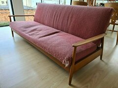 1. FREE wooden-framed sofa that folds down to a sofabed. Needs reupholstering, but the frame is solid. Dimensions (approx): 193 cm (length) x 83 (depth upright) x 77 (height). Depth is 110 when folded down Collection only from SE15. Any questions please let me know. Thanks, Charlie