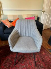 2. I have a Darcy Office swivel chair. Grey with black legs. It's been used but is in very good condition. Tiny scuff on right arm. Retails at £100 - https://www.laura-james.co.uk/products/darcy-swivel-chair-grey-and-black Please come to collect. I'm se27 based.