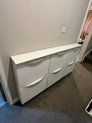 1. Giving away 6 x IKEA TRONES shoe storage units (originally sold in packs of two). Original IKEA product link for reference: https://www.ikea.com/gb/en/p/trones-shoe-cabinet-storage-white-00397307/ White IKEA TRONES shoe cabinets x6 individual units Approximate measurements: length 156cm, height 76cm Good condition, may need a light dust-down Slim design – ideal for hallways Free to collect from local address (East Dulwich, SE22). First come, first served. Please message to arrange collection. Must be gone by the weekend.