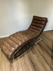 Stunning John Lewis Joel Chaise longue in a vintage tan/brown leather. Purchased 13 years ago £1200, one owner rarely used. Features a comfortable, quilted leather cushion on a sturdy chrome base (heavy!!) perfect for reading, relaxing, or adding a stylish statement piece to your living room. Genuine leather with a naturally distressed look that adds character. Excellent condition, pet and smoke free home. Dimensions: Length: 150 cm Width: 60 cm Height: 86 cm Collection only from SE22.