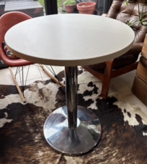 5. Good solid used bar/side table with chrome leg and base £15 White top Will disassemble to fit car 60 x 60 x 75cm tall