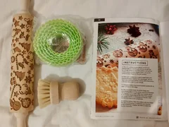 Brand new and unused Pastrymade beech wood Christmas theme embossed rolling pin, wooden cleaning brush, 6 piece round, plastic cookie cutter set and 20 page Instruction/Recipes booklet. Total length 37cms/14"Pin length 19cms/7.5"Width of pin 5cms/2"Width of one handle 9cms/3.5" All measurements approximate (may be 1-2cms difference). Ideal for own use or perfect as a Christmas gift for a lover of baking. View more photos on my ad HERE for more details. £19.99 cash on collection only from SE23 3YW Forest Hill SE23 / Sydenham SE26 border and just up the hill from Dulwich SE22