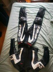 https://www.ebay.co.uk/itm/277411951820 Spyke 2-piece motorcycle suit in black and white, dating from 2003. This is a women’s EU size 38 suit, made from 100% premium leather and designed for both comfort and protection. Brand: SpykeYear: 2003Size: Women’s EU 38Material: 100% leatherColour: Black & whiteArmour: CE-approved protection in the back, elbows, chest, and kneecapsConstruction: 2-piece suit (jacket and trousers) with full connecting zipperCondition: Used but in mint, like-new condition – no scuffs, tears, or fading.