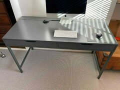 1. IKEA Alex Desk. Dark Grey. 131 x 60cm work surface with 2 drawers and flip up cable compartment. In good condition. Underframe has been removed ready for transport. All fixings and instructions included.