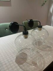 1. SOLD. Add a touch of simplistic elegance to your decor with this beautifully refined wall lighting. The contemporary black wall fixture is balanced by the clear glass shade which allows for plenty of light to illuminate your home. The beautiful spherical design will create a sophisticated, understated feature in the home. Pair of Culinary Concepts Globe Wall Lamps. For sale for £40. RRP £270. Recommended Bulb - E27/60W Bulbs not included.
