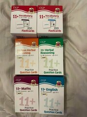6 sets of 11+ revision cards for ages 10-11 for Maths, English, Non verbal/Verbal Reasoning and Vocabulary. In excellent condition. collection from Herne Hill, SE24 9DA please see photo and PM if interested These 11+ English Revision Question Cards are essential for netting those top marks in the tough 11+ tests. They cover all the key English topics for GL and other test providers, and are the perfect way to test pupils' knowledge — all in one portable package. This pack matches our Study Book topic-for-topic, and is ideal for cementing what pupils have learned. Answers to every question are explained on the back of each card. For even more pocket-sized 11+ prep for GL and other test providers, check out our Question Cards for Maths, Verbal Reasoning and Non-Verbal Reasoning.