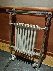 This towel airer is no longer required but is in full working condition. The radiator is 330mm w x 495 mm h. The total dimensions are 635mm w x 980mm h.