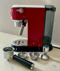 Now Sold - Delonghi Dedica EC680 red espresso machine. Has been a solid coffee maker for years, still in great working order and recently descaled. Comes with extras not included with original - upgraded pressurised basket for better coffee and a heavy metal tamper. Makes a much better espresso than expected from a budget coffee machine. £50 Features 15 bar professional pressure Ready to use in 35 seconds Anti drip Manual milk frother so you can make more than espresso Delonghi Premium Pump Coffee machine EC680.B The Dedica (EC680) from De’Longhi is a must for any budding barista taking their first step into domestic pump espresso machines. You can make an array of hot beverages, and using the manual milk frother you can make the perfect lungo, latte, cappuccino, or other milky drink. It produces 15-bar restaurant and coffee house standard coffee in the comfort of your own home. All aspects of a typical professional pump espresso machine (like the ones you see in your high street coffee bar), such as grinders, filter holders, and steam pipes, are found working inside the De'Longhi Dedica EC680. The traditional milk frother allows you to impress your guests by manually frothing the milk whilst making them the ideal cappuccino or latte.