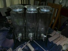 Trio of Tall Glass Dispensers on a metal stand. All in very good condition. Very heavy. Height of Dispensers without stand: 30cms. Height on stand: 43cms. Price: £15. Bundle of Christmas items. All brand new. I will attach photos shortly. X2 Large Faux Velvet Stockings. Solid Glass Angel with Crystal Design. Boxed hand-painted Robin Bauble. Large Gold coloured glitter tree topper Star. Price: £20 Comes from a smoke/pet free home. I am based in Crystal Palace, but always happy to drop off. Regards, Kimsi More photos.
