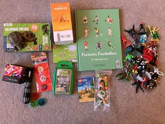 Stocking Filler Toy Bundle £10 for all. Includes unopened box of Hey Clay modelling clay to make dinosaurs. A Galapagos Tortoise 3D puzzle- made but comes apart, with box and instructions, very good condition. A colourful shape puzzler - like new 3 Underground badges, new unopened. Fantastic Footballers Book as new Lego City Farm set includes all pieces and instructions. Minecraft Top Trumps - like new Large collection of action figures, not suitable for young children. A Star Wars Light Sabre Torch with interchangeable ends, requires batteries. Batman key ring torch, working (eyes light up) like new. Collection from Forest Hill, but I’m happy to drop off if nearby.