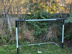 1. 6ft x 4ft metal pro goal. Comes apart. perfect size for a kid in a London garden. Some wear and tear as yoi would expect with an outdoor goal. £30 collect from Nunhead